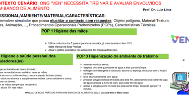 Objetivo: Desenvolvimento de projetos de Gestão, Logística (previsão de demanda, compras), distribuição, controles de estoque (perecíveis, prazos de vencimento), reaproveitamento e descarte de resíduos, sensibilização e pertencimento dos participantes e beneficiários.